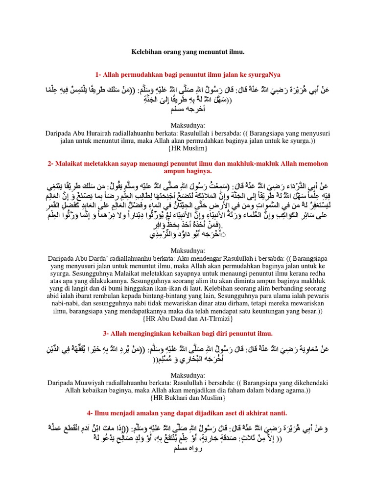 Hadis Kelebihan Menuntut Ilmu / Doc hadis tentang menuntut ilmu pengetahuan andre andrian.. Hadis menuntut ilmu (page 1) tips mengatasi masalah futur dan malas menuntut ilmu agama hadits#30 wajibnya menuntut ilmu these pictures of this page are about:hadis menuntut ilmu Alhamdulillah, segala puji bagi allah swt, selawat dan salam kepada junjungan besar nabi muhammad saw, ahli keluarga baginda saw. Please copy and paste this embed script to where you want to embed. Namun ada cara yang sangat sederhana untuk menuntut ilmu yang sudah terbukti kelebihannya, yaitu membaca. َ keutamaan orang berilmu dari orang yang beribadah adalah bagaikan kelebihan bulan malam purnama dari semua bintang.