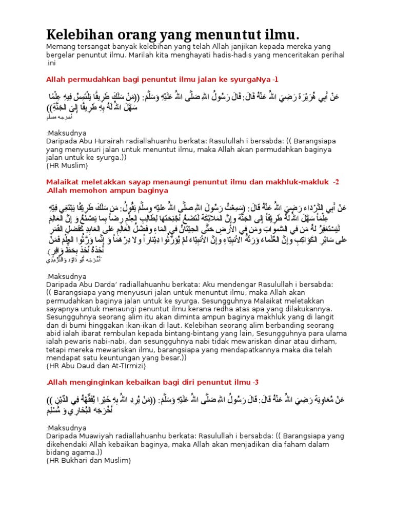Related : Hadis Kelebihan Menuntut Ilmu / Doc hadis tentang menuntut ilmu pengetahuan andre andrian..