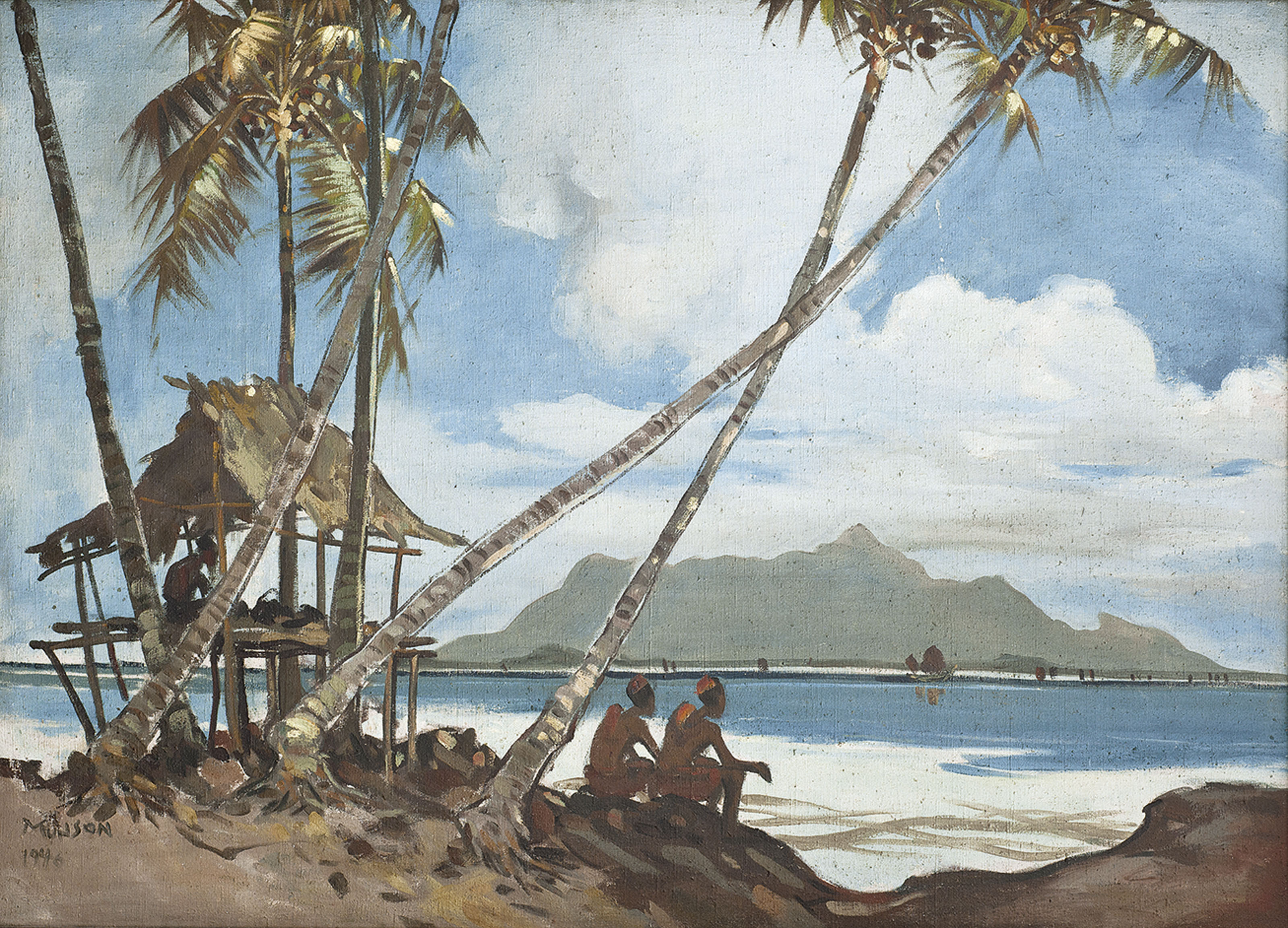 The harvesters, 1948, cat air yong mun sen • gemar menampilkan tema alam dan manusia dalam karya cat air beliau.