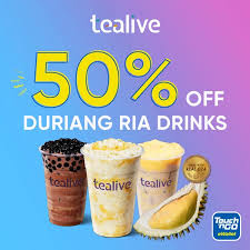 Tealive is renowned for its wide selection of bubble tea drinks. You can enjoy 50% discount on any duriang ria. Top 5 tealive promo codes. 1 is with boost app, another with touch 'n go ewallet. That's more than a month for you to enjoy the promotion.